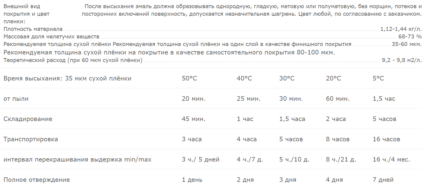 Жизнеспособность готовой эмали при t (20±2) °С не более 6 часов, при при t (30±2) °С не более 4 часов
