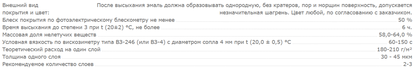 Для достижения необходимой вязкости, эмаль разбавляют вышеуказанными растворителями но не более 20 % от массы эмали.